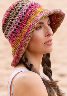 Die leicht verständliche Häkelanleitung für den breitkrempigen Häkelhut aus Farbverlaufsgarn für einen Kopfumfang von 52-54 cm sowie 56-58 cm ist erschienen in Rebecca Nr. 92, Modell 1. Du benötigst zusätzlich: Häkelnadel 4,0 mm