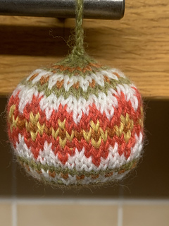Knitted baubles in DROPS Lima. The piece is worked in the round, bottom up, with multi-coloured Nordic pattern. Theme: Christmas.