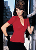 “Very close-fitting deep v-neck top with eyelet row insets and trims and short row bustline shaping.”