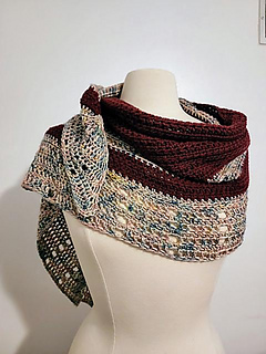 The Cestari and Distortion Fibers DK work well off each other giving this shawl a fabulous contrast in color and texture.