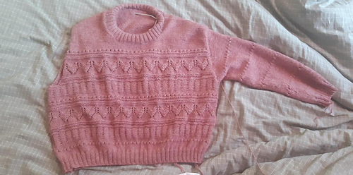 Knitted jumper in DROPS Daisy. The piece is worked top down with diagonal/European shoulders, lace pattern, double neck and split in sides. Sizes S - XXXL.