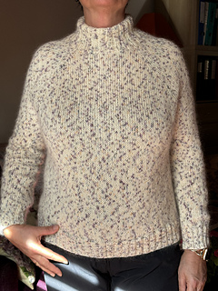 Knitted jumper in DROPS Fabel and DROPS Kid-Silk. The piece is worked top down with raglan and double neck. Sizes S - XXXL.