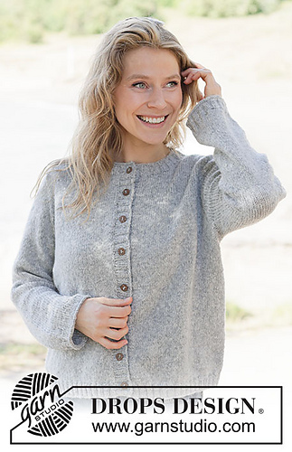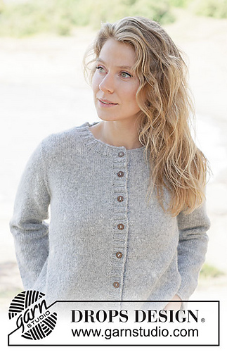 Knitted jacket in DROPS Sky or DROPS Cotton Merino. Piece is knitted top down in stocking stitch with European yoke. Size: S - XXXL.