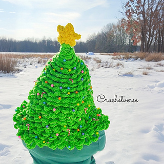 FIRST: Oversized Tree Hat created by holding (4) strands of ww yarn together and using a P/Q(15mm) hook