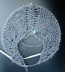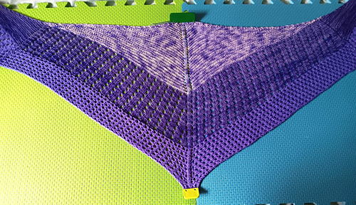 This is a triangular shawl WORKSHOP I have used for classes. You can work it on your own or maybe with a friend or two with these instructions. It begins with a tab cast on and has a centre spine with increases on either side. This shawl will be wider than it is tall. It begins with a small triangle (Tier I) which you can work in stockinette stitch or garter stitch. Then you add another set of markers and increase points for Tier 2. Change colour and/OR work different textured or lace patterns in the 4 sections between the markers. Tier 3 adds one more opportunity to change up the stitch patterns and the colour. There is a list of stitch patterns to try out. You can knit this shawl over and over so that it looks different each time.