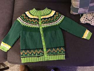 Knitted jacket for children in DROPS Merino Extra Fine. The piece is worked top down with round yoke and Nordic pattern. Sizes 2 - 12 years.