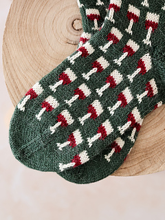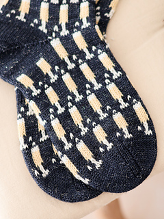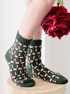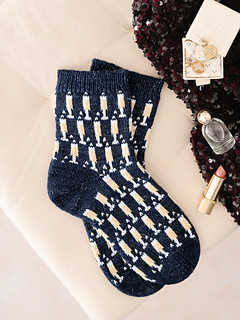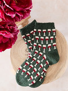The “Socks to Enjoy in Moderation” are perfect for ushering in the harvest season or complementing an evening apéro or holiday celebrations. The colorwork is beginner-friendly, using only two colors per row, with duplicate stitch for the three-color rows. Three colorwork charts are included in the pattern.