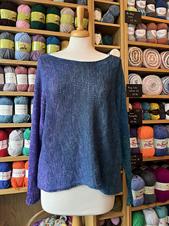 The Adventurer Sweater is a cute oversized pullover that is knit horizontally, rather than top down or bottom up. This pattern was designed for the Treehouse Knits Travelling the World Advent for 2024 as a horizontal fade using the variegated advent (or a fade/striped version using the tonal advent or full advent) . It has a crew style neckline with a slipped stitch selvedge edging, ribbed cuffs, and a slipped stitch selvedge edging on the bottom hem. It is knit flat from the right cuff to left cuff, with a sloped drop shoulder fit. The bottom of the arms and the sides of the body will be seamed using the mattress stitch technique. The sweater is designed to fall to an upper hip level. The pattern is intended to be a boxy fit, but has options for some bust dart shaping if desired, as well as adding extra length as needed for the body and sleeves. This is a size inclusive design, written for 11 sizes (34-74 inch / 85-185 cm finished bust, in 4 inch / 10 cm increments) and designed for 6-10 inches / 15-25 cm of positive ease.
