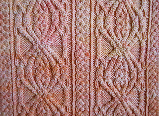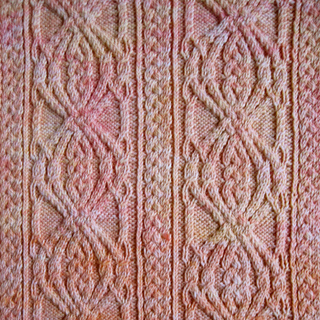 This is a pattern for an ornately cabled stole. The cable is combined with a more traditional plait cable, albeit a complex one.