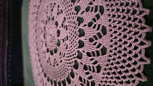 This is a pattern for a round crochet doily, table topper, made with cotton thread size ten (such as Aunt Lydia’s) and a steel hook 1.5 mm.