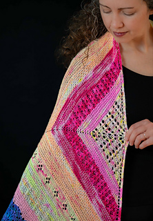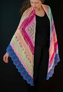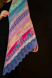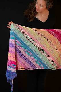 This wrap is knit seamlessly from the top down and then from the center out. Using a combination of garter stitch, lace, and textured stitches, your needles will never get bored! This wrap has a fun construction that was specifically designed to optimize the yardage in your mini skeins as the wrap grows.