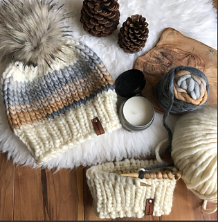 In the original pattern I used Sirdair Adventure Yarn -and Lion Brand Wool Ease Rowing Stripes - super bulky rowing yarn with exceptional warmth, softness and thickness. You can substitute any super bulky weight yarn like Malabrigo Rasta but please keep in mind the rowing yarn is a tad thicker - so I would add 2 stitches more for the cast on if you will be substituting yarns.