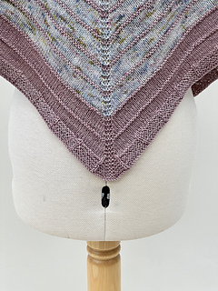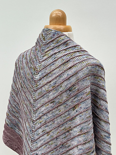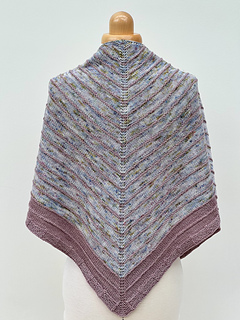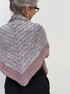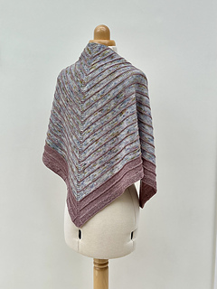 The stitch pattern consists of a garter stitch ridge on a stocking stitch background which is repeated throughout the shawl until the border is reached. In the upper part of the shawl, the ridge is knitted with the contrast shade. The lower section and the border are knitted in the contrast shade. The border is knitted with a garter stitch rib pattern.