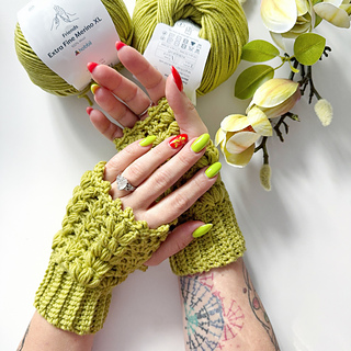 Add a playful pop of texture and color to your winter look with these cozy fingerless mittens!