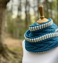 If you’ve been thinking about giving brioche a try, this is an great way to do it: the brioche sections are short, with a simple two-row repeat, and the two colors make it easy to read your knitting. The rest of the cowl is worked in beginner-friendly knits and purls. Plus, the cowl begins and ends in garter stitch for a simple cast on and bind off. The variety of stitches keeps the knitting interesting, making for a fun knit.