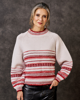 This elegant colourwork sweater, designed by Lucy George, was inspired by traditional Delft ceramics. The raglan sweater is knitted from the bottom up in panels which are then seamed, and is finished with corrugated rib edgings. Lucy has used World of Wool’s Fluff DK yarn, which is a soft and springy pure wool that’s spun in Yorkshire. It comes in a wide choice of neutral, pastel and bright colours.