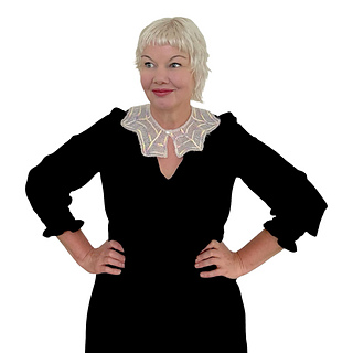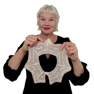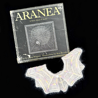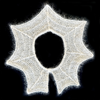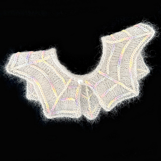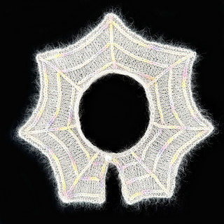 Add a little touch of goth to any outfit with this sweet removable collar. Aranea Collar is perfect for a sweet gift or perhaps a cute addition to your Halloween wardrobe. This delicate collar is reminiscent of cobwebs spun by orb spiders. Knit up in a light weight yarn, simple shaping and strategic garter rows within the stockinette base create a cobweb illusion. Choose between 4 sizes with optional embroidered embellishment. A statement spider or sparkly button will add the final flourish, as would beads or sparkly yarn for a dewy effect.