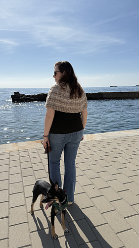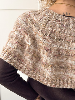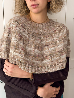 The ARENA PONCHO is a light and cozy piece inspired by the calm of the sea and the soft tones of the shoreline. It is worked from the top down in the round, combining two yarns to create a gentle, flowing texture.