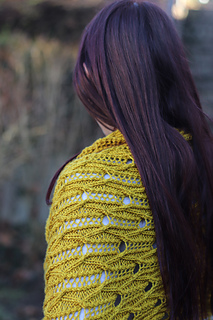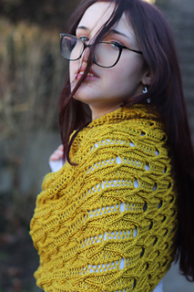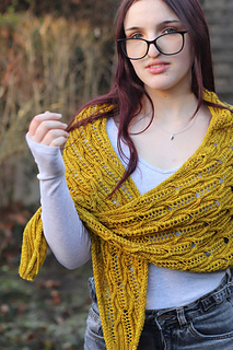 A final glow before the day fades, Auréline gently closes the Cabinet des Tricosités like a cherished book being set aside. Knitted in DK weight, this shawl—almost a scarf in shape—naturally drapes around the neck and shoulders, inviting an instinctive gesture of wrapping oneself in warmth.