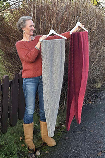 Skjerfet strikkes sidelengs fram og tilbake i rettstrikk (riller). Formen lages ved hjelp av forkorta pinner med dobbeltmaske. Skjerfets første halvdel strikkes med stadig færre masker mellom hver vending, deretter blir det flere masker mellom hver vending i andre halvdel til skjerfet er ferdig.