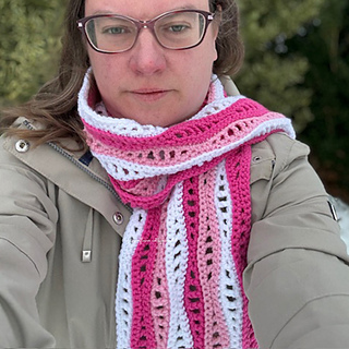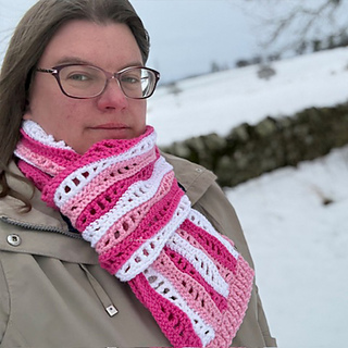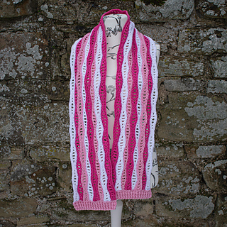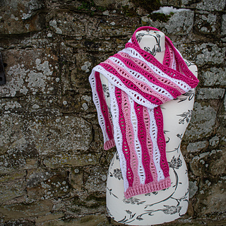 The Bamburgh Breeze Scarf is suitable for confident beginners and beyond. The PDF includes clear sizing, detailed instructions, and links to both right- and left-handed video tutorials to guide you through the stitch combination.