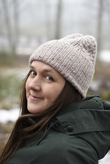 Yarn: 1 (1, 2) skein(s) of Tweedy by Hedgehog Fibres (50% Falkland Merino Wool, 37.5% Recycled wool, 12.5% Thread waste; 251 yds (230 m) per 100 g). Approx. 210 (235, 260) yds / 190 (215, 240) m of DK weight yarn. Sample shown in colourway Barley.