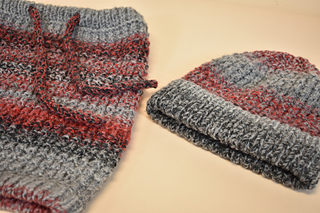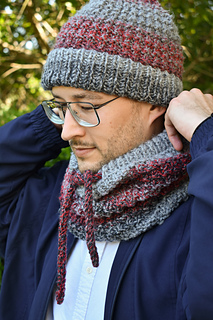 The Basalt Set is knit in the round from the bottom up. The hat begins with a provisional cast on and doubled brim. The cowl has doubled borders along the top and bottom edges, and an I-cord tie.