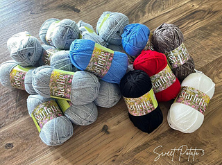 2855 yards of Yarn: Worsted Weight (#4) yarn (specific amounts of each color are included in the pdf file).
