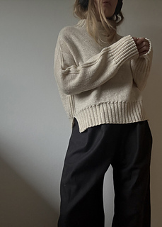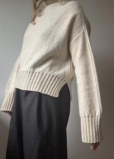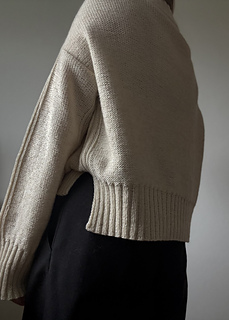 Bawi light is worked from the top and down. Choose between two different methods for the neckline - based on your skill level or preference. After the collar, the work is separated to make increases on front and back along the shoulders. Front and back are then worked flat separately to create the armholes, and finally the work is joined to be continued in the round. Stitches for sleeves are picked up and worked afterwards.