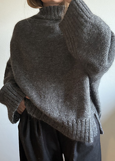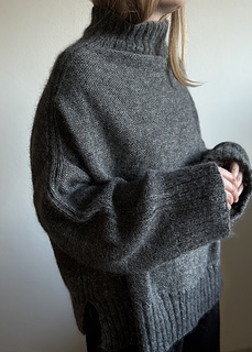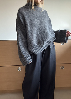 My chest circumference is 79 cm / 31.1”, which gives me 45 cm / 17.7” of positive ease in the cream version and 58 cm / 22.8” of positive ease in the grey version. Size up or down depending on the look you want, with a suggested minimum ease of 15 cm / 5.9” and a maximum suggested ease of 23.6”.