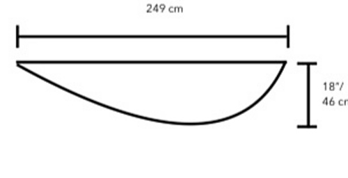 Approximately 98”/249 cm by 18”/46 cm after blocking.