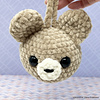 The Bear Keychain is made with Premier Parfait Chunky and a 5.5 mm hook. When using the recommended hook size, yarn and yarn under (x stitch), he measures 4 inches/10.16 centimeters.