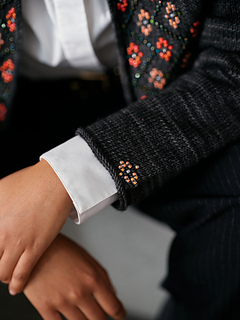 Beaded colourwork is the term Jeanette Sloan uses to describe the technique of threading beads onto yarn(s) in a predetermined sequence in order to create motifs or patterns that are revealed as the item is knitted. As ‘threading on’ is often done before the initial cast on, colour combinations can be planned in advance, leading to the creation of unusual and interesting motifs.