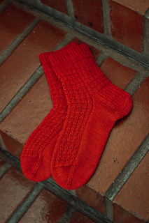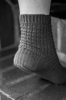 Bindred Socks are worked cuff down using fingering weight sock yarn. The front and back of the leg as well as the instep of the foot have textured pattern running through the sock. The heel has reinforced heel flap and uses French heel turn technique.