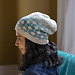 It is possible to adjust size by changing needle size. It is also possible to work this hat as a beanie rather than a “slouchy” hat. To do this, work Rows 7-12 of the colorwork motif once, then work Rows 1-12 twice more before beginning the decrease chart.