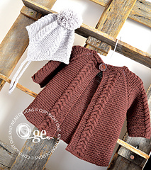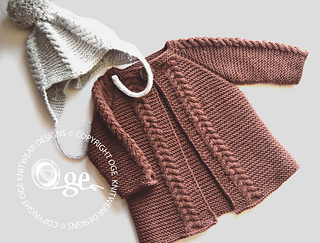 This stylish coat is worked in garter stitch with a simple cable pattern running down both fronts and down the middle of the sleeves, giving the knitter enough variation no to get too bored.
