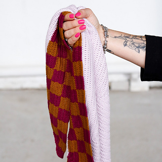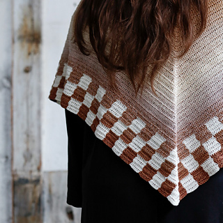 The Blockedge Shawl is a wonderful modern crochet wrap. The triangular design starts with a simple and mindful base, making it easy to settle into the project. The real character, of course, comes from the blocked border. By adding the checkerboard edge, the shawl gets a look that is both clean and playful. The border isn’t just decorative, it also provides a beautiful, stable finish. The design is technically interesting without becoming complicated, allowing you to crochet comfortably while ending up with a unique and stylish result.