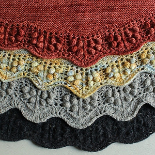 Once the voluminous lace edging is complete, the garter stitch section is worked with short rows.