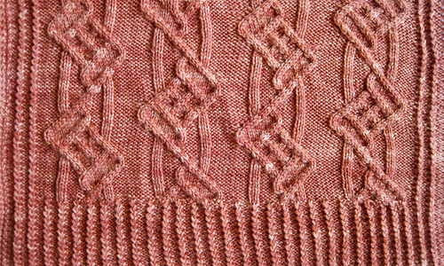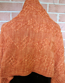 The yarn used in the sample is Malabrigo’s Arroya yarn in colorway, Terracotta. The shawl was expertly tested by Gay Fehr who can be reached at: grf1956@gmail.com