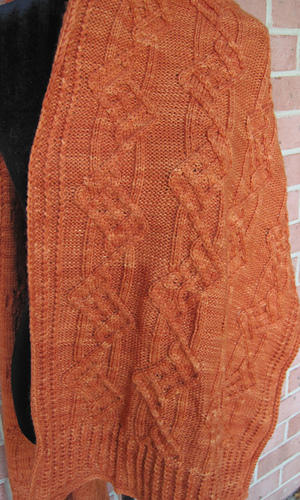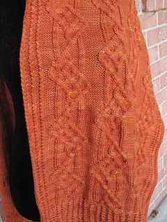 This is a pattern for an ornately cabled shawl, which is 20 inches wide and 68 -78 inches long. The shawl is comprised of a little known cable, and a twist rib border stitch, and requires approximately 1150 - 1450 yards of sport weight yarn.