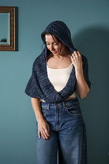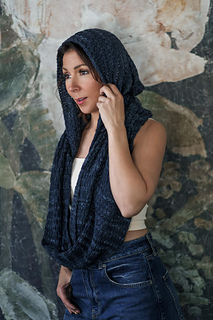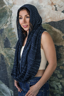 This hooded cowl wraps you in warmth with an attached looped scarf. Offsetting 1 x 1 ribbing every four rows creates a richly textured fabric with minimal effort. This beginner-friendly wearable is worked all in one piece with just two seams to sew. The cowl is long enough to loop it twice around your neck for days when you need extra warmth.