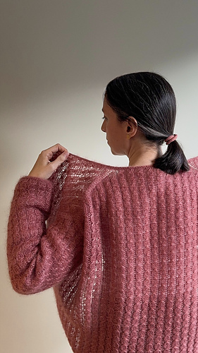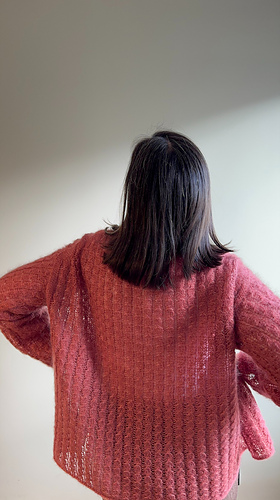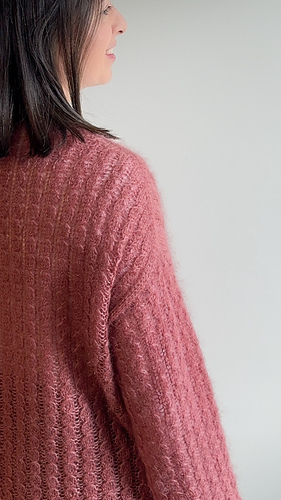 Once you reach the underarm, both fronts and the back are joined, and the body is worked in one piece down to the hem, which is finished with an i-cord bind-off.
