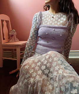 ~ You can choose to knit this top with or without holding a strand of mohair together with the fingering weight yarn. Placing the buttons will be slightly more tricky with the mohair, however keep in mind that there are only 6 rounds in the pattern with buttons so the extra effort will be worth it! The mohair will create a slightly denser fabric.