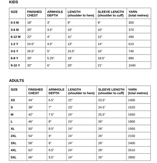 The PDF is 64 pages with a handy size chart, plenty of progress photos and a chart in each size for each design.