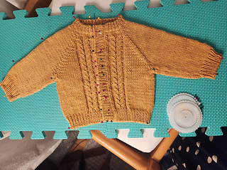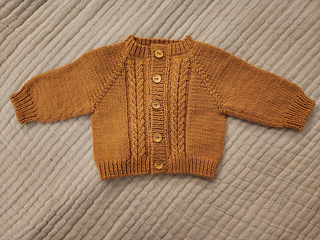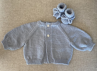 This baby cardigan is worked from the top down with raglan shaping from the top down in stocking stitch. Stitch counting charts for the raglan increases are given for each size in the pattern.