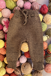 These baby pants are worked in the round from the top down, in stocking stitch.