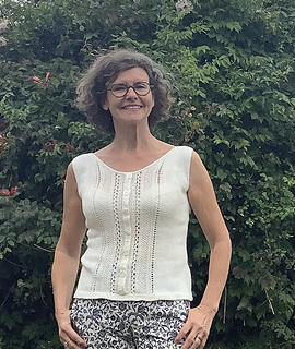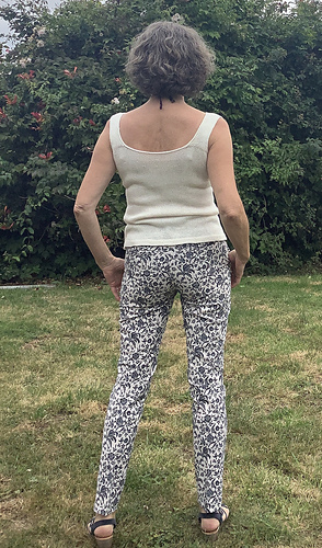 The body of the camisole is straight and has no waist shaping. Depending on your body type, you will have to decide if you need negative ease, no ease or positive ease in the bust. It is important to choose a fairly fitted size at the top of the chest so that the back of the tank top is snug for proper fit. I recommend that you measure the circumference above the bust as well as the circumference at the bust. You can add 1 inch of positive ease at the top of your chest but no more. This may cause negative ease at the chest, if, like some of my testers, you are rather busty.
