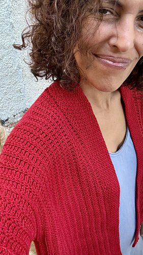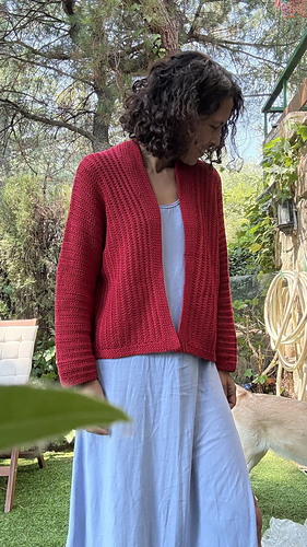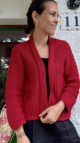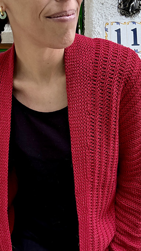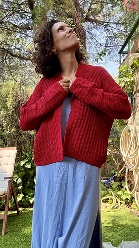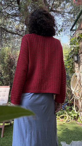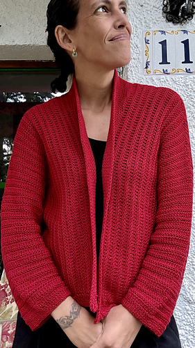 Las mangas se trabajan alrededor de la sisas. El cárdigan tiene una holgura positiva de unos 15/10 cm, pero puedes elegir una talla con más o menos holgura si prefieres que te quede más o menos