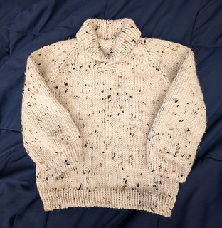 This sweater is knitted in the round from the top down, with raglan increases.