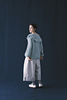 水色のサンプルはサイズL: バスト79cmのモデルが余裕33.5cmで着用